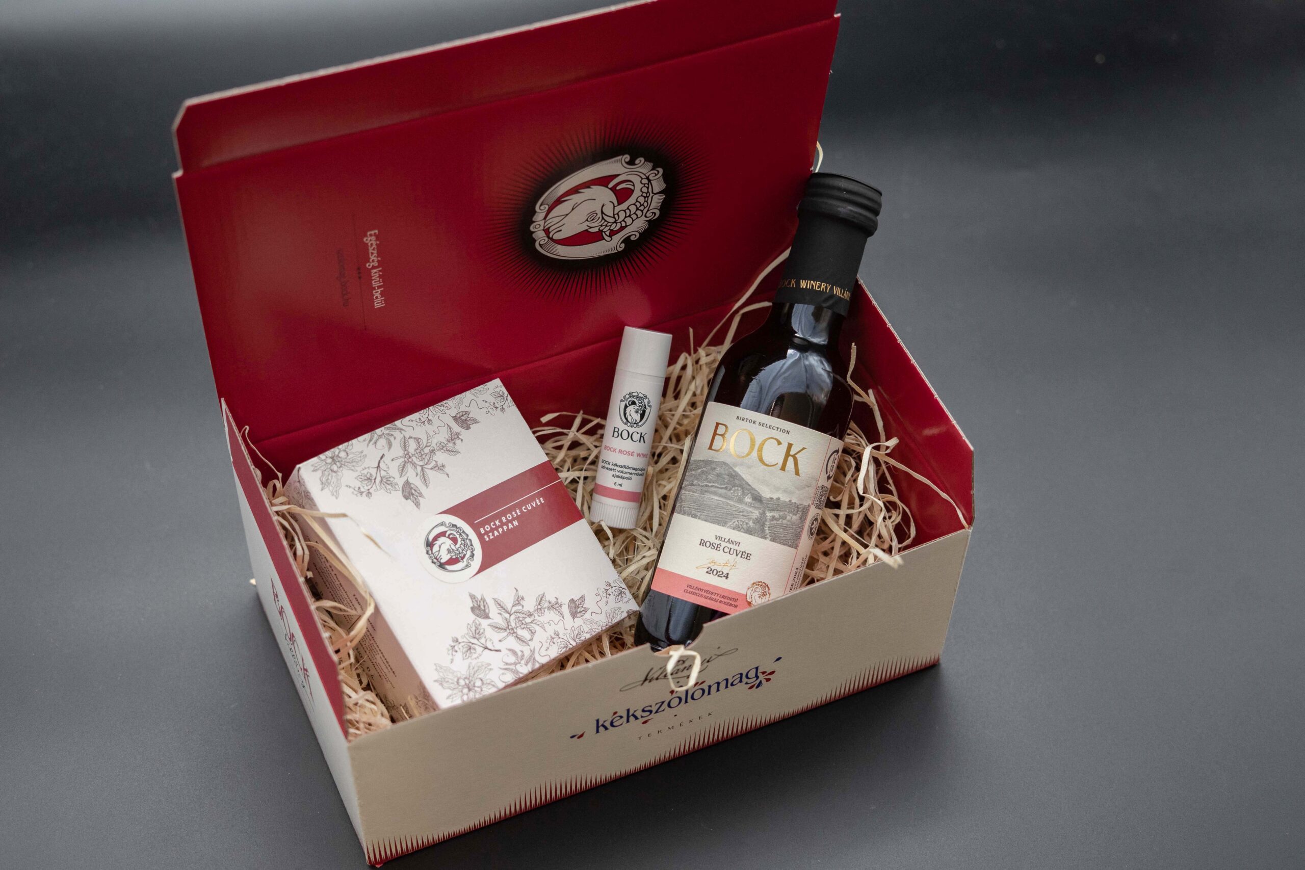 (HU) Lepje meg Magát vagy szeretteit Bock Rosé ajándékcsomaggal. A csomagba kerül egy mini üveg Rosé Cuvée, egy Rosé Szappan és egy Bock Rosé Ajakápoló.